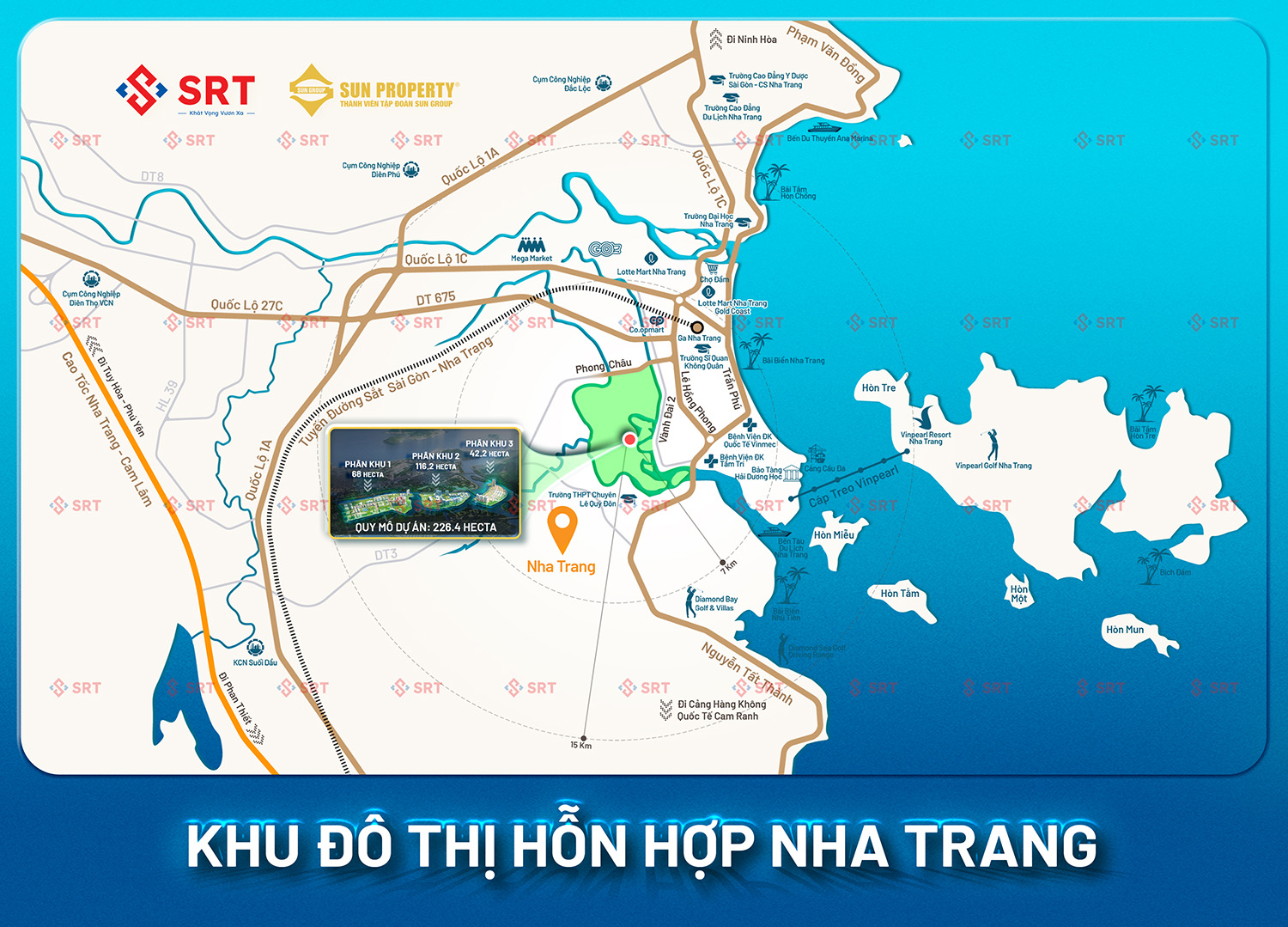 – Đảo DOWNTOWN – Đảo hành chính & thương mại, tập trung các cơ quan ban ngành, đặc biệt là trung tâm hành chính mới của Khánh Hòa.